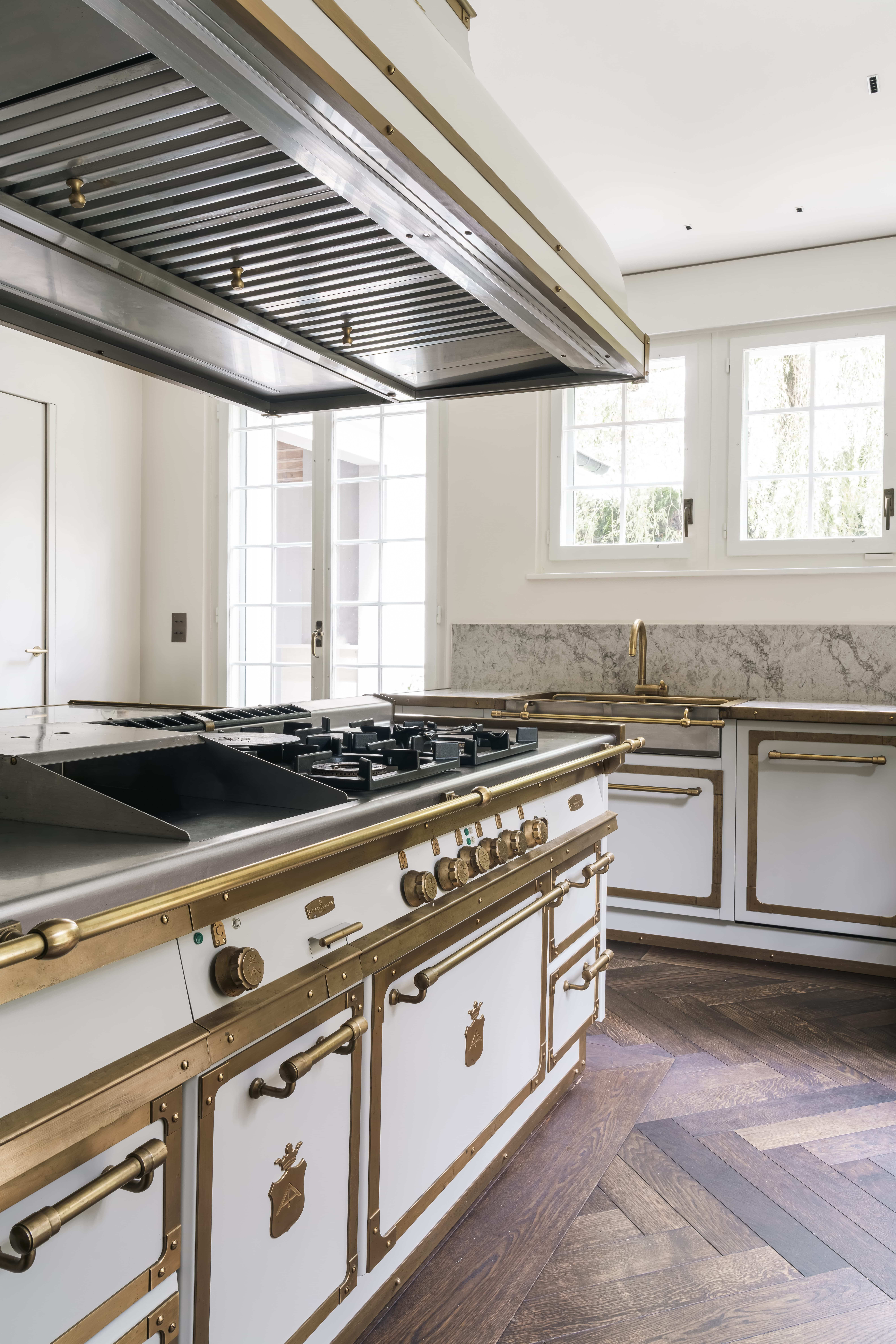 Dans une villa raffinée à Genève, Officine Gullo présente une cuisine Tailor Made réalisée en acier peint blanc avec des finitions en laiton bruni. Alliant savoir-faire artisanal, technologie de pointe et design intemporel, l’espace équilibre performance professionnelle et confort quotidien.