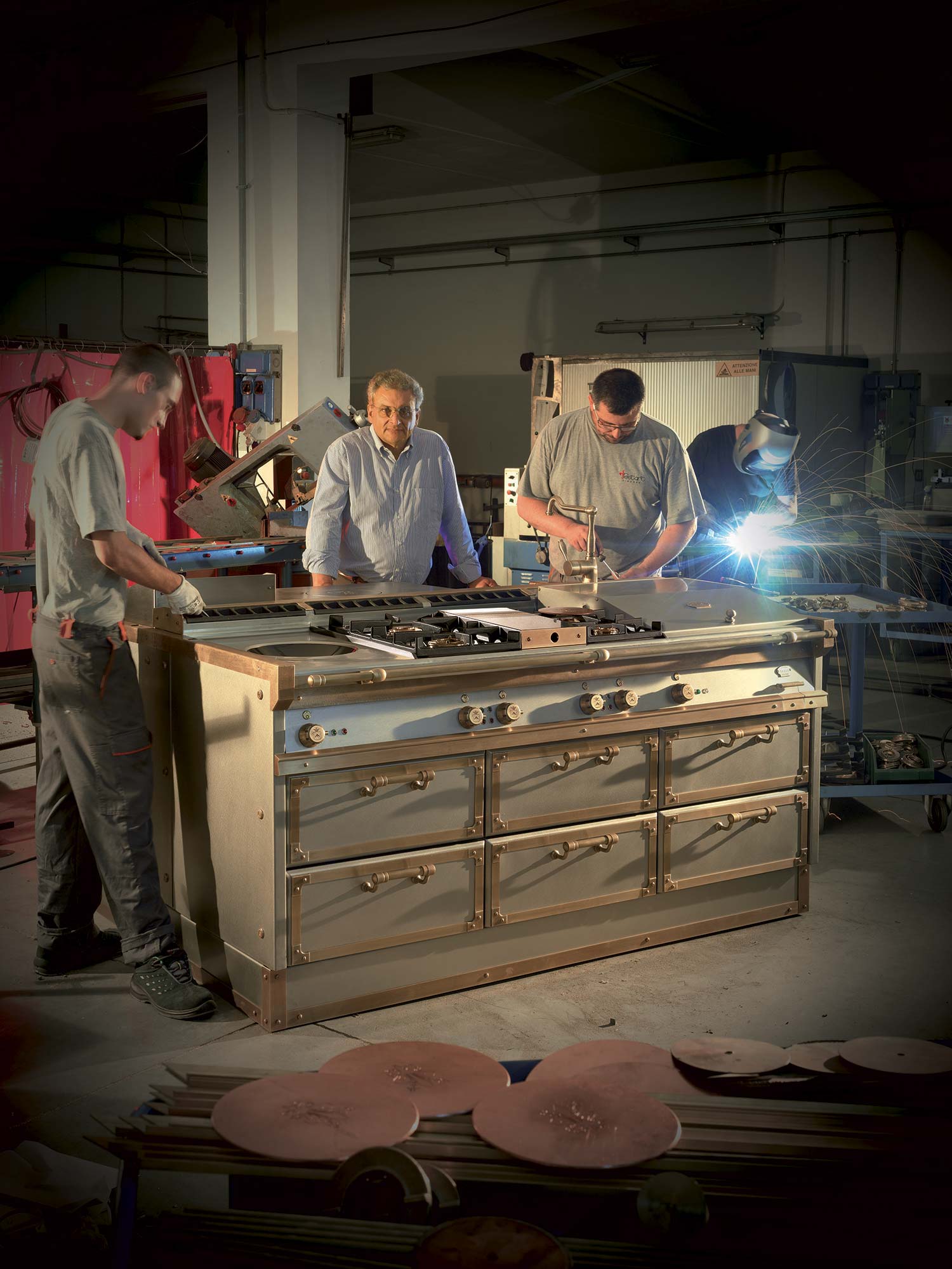The production premises extend across 10 000 square metres, in Strada in Chianti, near Florence, nestled in the Tuscan countryside. This is where the careful craftsmanship of metalworking encounters innovative modern technology. In the Officine Gullo production process, each detail is handcrafted. No assembly production or standard components; just materials that expert artisan hands shape according to the needs of each order. Officine Gullo is exactly what the name says it is: a workshop where raw materials are cut, folded and shaped by hand to craft everlasting oeuvres. This is where clients comprehend how the quest for absolute quality has met modernism, enabling industrial production to rediscover artisanship as its ultimate expression.