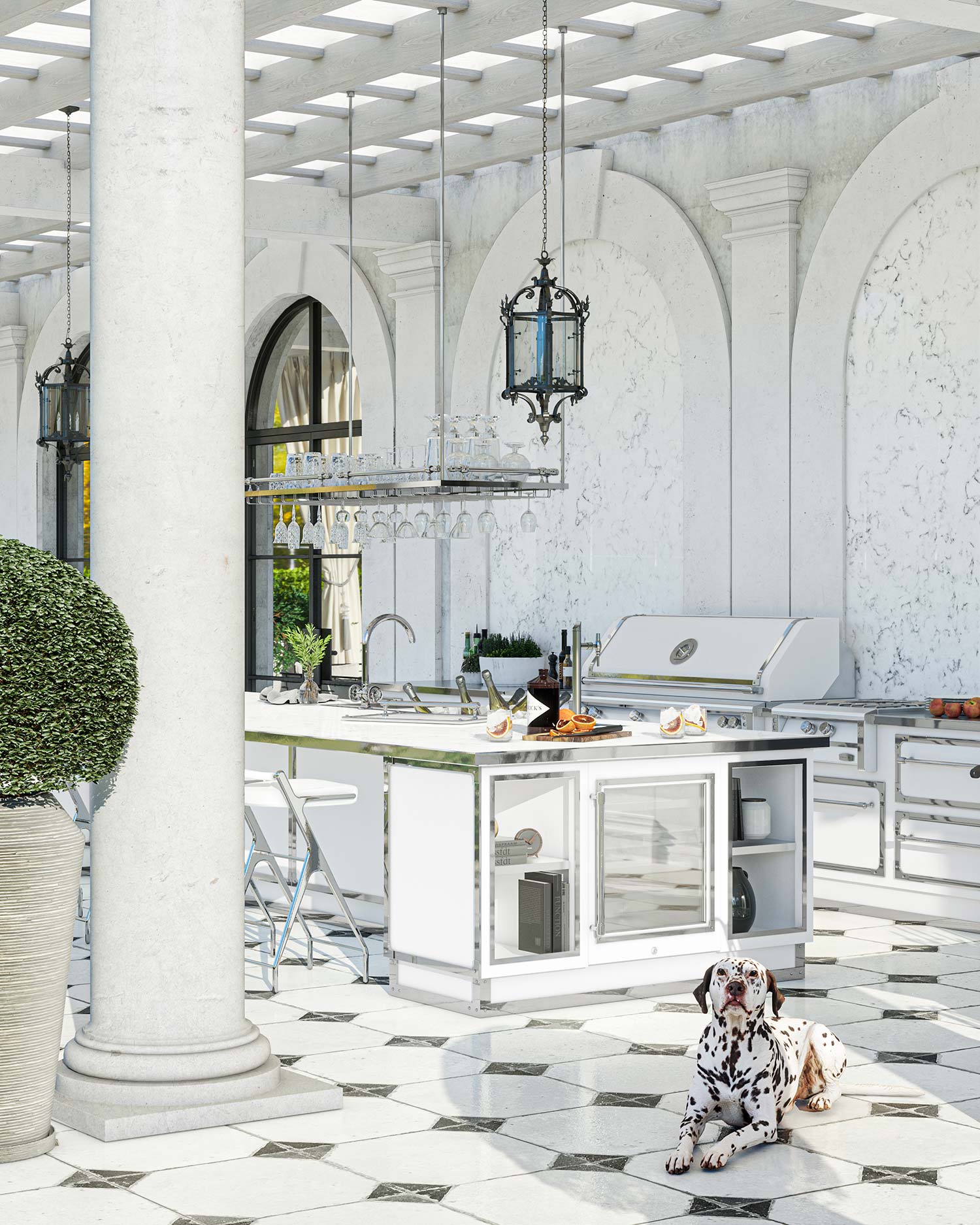 Through a series of combinable independent elements, the Outdoor Kitchen offers infinite customized design solutions.