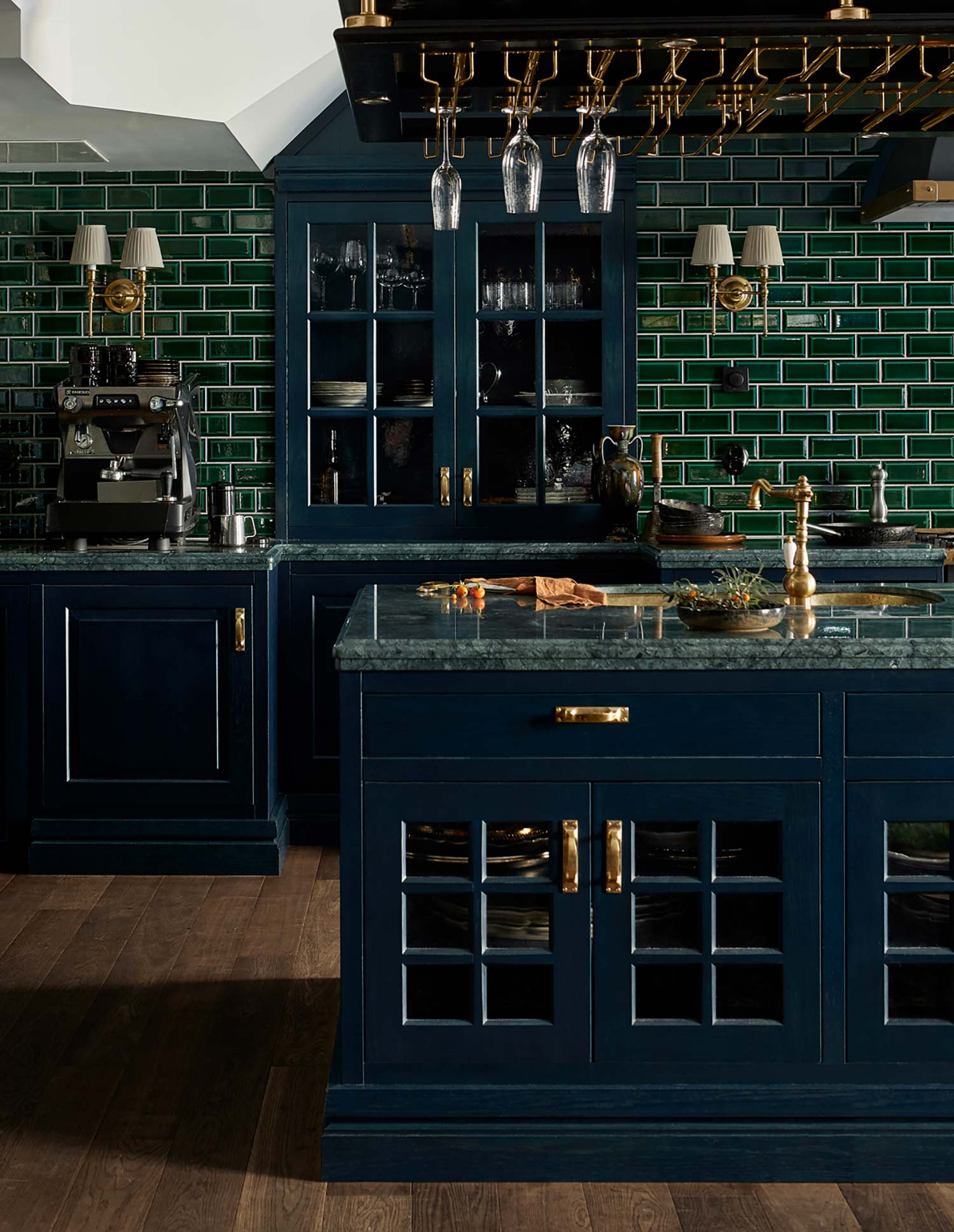 In Sweden, Officine Gullo, with its Scandinavian partnern Mygind Design has crafted two projects, both of which have stemmed from a collaboration with interior design company Himlekök: Blue Black and Burnished Brass, and Ultramarine Blue and Burnished Brass. Certain distinctive Officine Gullo products fit perfectly with the modern and refined design by the Scandinavian companies in these two kitchen spaces, resulting in an ideal pairing of bygone charm and contemporary elegance.
